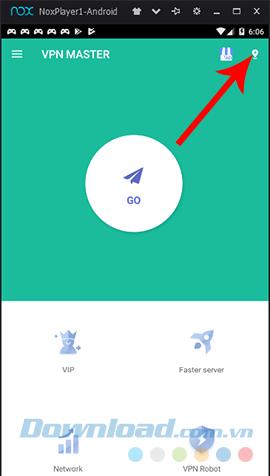 Bước 5: Quay trở lại giao diện chính của giả lập và tiếp tục khởi động ứng dụng VPN Master lên, sau đó làm lần lượt như sau: