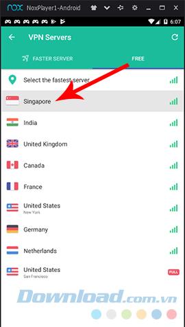 - Tìm và click vào mục Quốc gia tương ứng mà ta đã chọn ở trên - Singapore