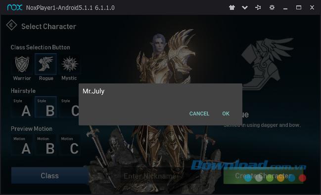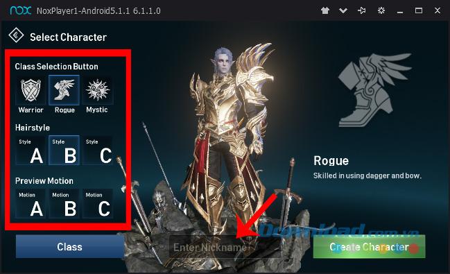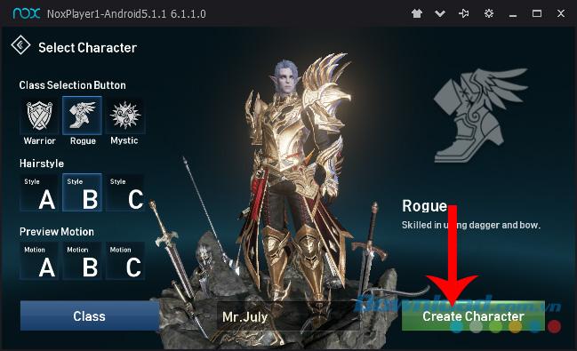Bước 6: Chọn nhân vật và đặt tên xong, nhấn vào Create Character để bắt đầu vào chơi game.