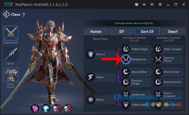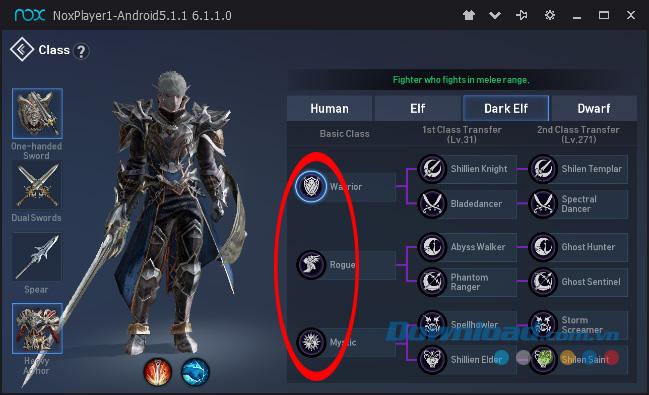 Bước 4: Chọn được nhân vật cần chơi, các bạn click chuột trái vào Class để tiếp tục lựa chọn phong cách chơi cho nhân vật của mình.