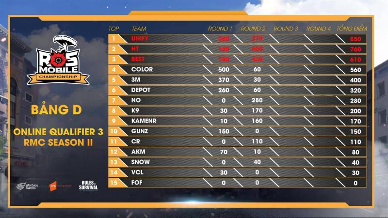 Ở một diễn biến khác, bảng D đánh dấu sự xuất sắc của UNIFY khi họ đạt được top 1 ngay ở trận đấu mở màn và hạng 4 ở trận đấu thứ hai. HT có một ngày thi đấu vô cùng bay ở trận đấu thứ hai khi họ giữ người và cover cho nhau rất tốt, nhưng dường như đó là chưa đủ để HT leo lên top 1 bảng xếp hạng.
