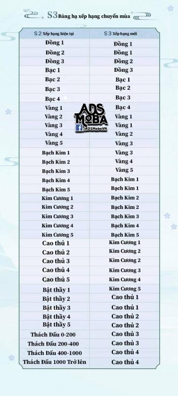 Ở mùa 3 người chơi sẽ nhận được bật rank mới dựa trên rank của họ ở mùa 2. Đồng thời có thể nhận được khung và skin tương ứng với xếp hạng hiện tại ở mùa trước.