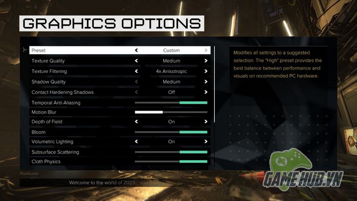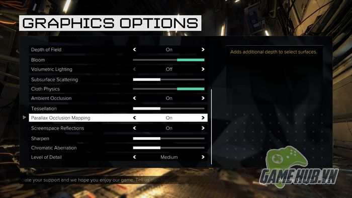 Chính vì thế lựa chọn duy nhất cho những ai muốn thưởng thức trọn vẹn các tựa game sát phần cứng là giảm tùy chỉnh đồ họa ngay bên trong game. Và Deus Ex: Mankind Divided - tựa game vừa chào sân PC/Console cũng không nằm ngoài quy luật đó. Với những công nghệ đồ họa tân tiến nhất được áp dụng bên trong, Deus Ex: Mankind Divided đang trở thành thử thách cực kỳ cam go đối với những chiếc máy tính có tuổi.