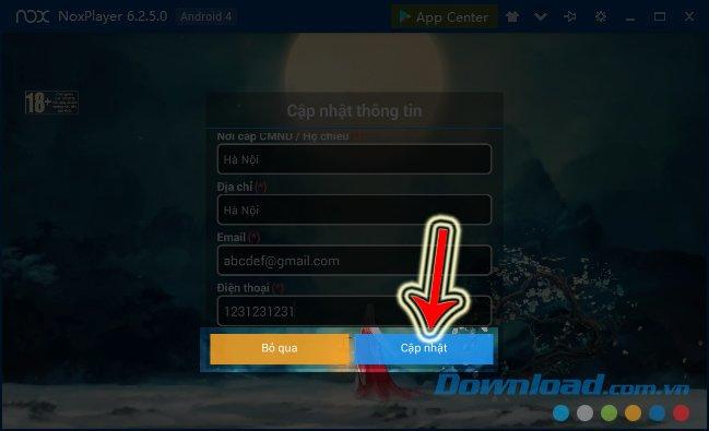 Bước 3: Với việc sử dụng tài khoản Khách để đăng nhập, bạn sẽ cần cung cấp đầy đủ, khá nhiều loại thông tin khác nhau. Tuy nhiên, chúng ta cũng không cần quá 'trung thực' trong việc khai báo những thông tin này. Chỉ cần điền đầy đủ rồi chọn Cập nhật là được.