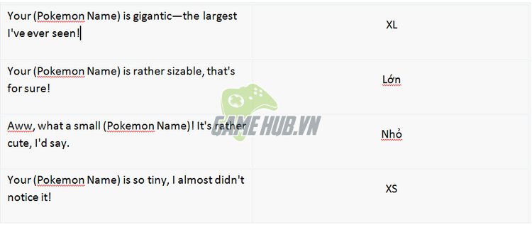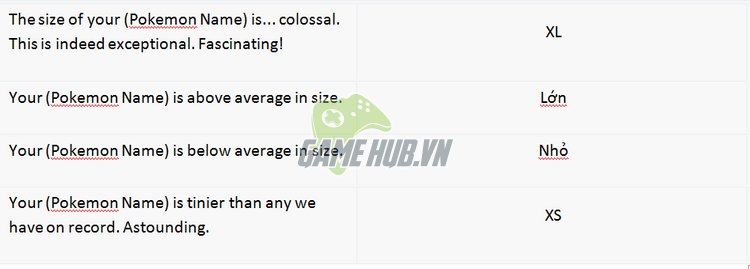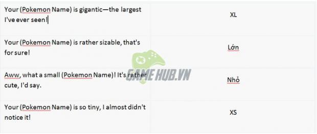 Đánh giá về kích thước Pokemon