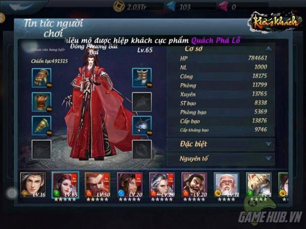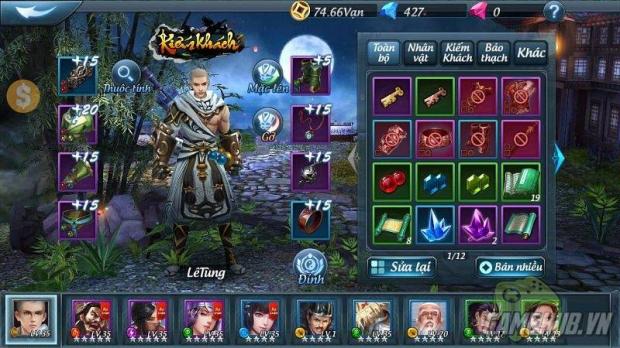 Người chơi có thể thoải mái chiêu mộ các nhân vật kinh điển trong Kim Dung, Cổ Long truyện như: Đông Phương Bất Bại, Dương Quá, Tây Môn Xuy Tuyết, Vương Ngữ Yên, Triệu Mẫn... Tuy nhiên, trong đội hình đi cùng khi chiến đấu sẽ có tối đa 4 kiếm khách. Các kiếm khách trong game được xây dựng giống y hệt nhân vật chính, đều có thể trang bị thêm vũ khí, áo giáp, cũng như tăng điểm skill, tăng thuộc tính...