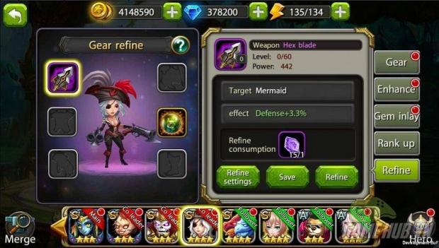 Về trang bị - vật phẩm vô cùng quan trọng đối với các anh hùng mỗi khi lâm trận, cũng sẽ có thêm các tính năng “mảnh ghép trang bị”(Gear fragment), “tinh luyện” (Gear refine) và “phân hủy” (Gear decompose). Người chơi sẽ nhận được mảnh ghép trang bị trong Shop hoặc Boss Dream, từ đó hợp thành trang bị tím hoặc trang bị cam. Trang bị tím trở lên đều giúp tăng cường thuộc tính riêng của mỗi vị tướng.