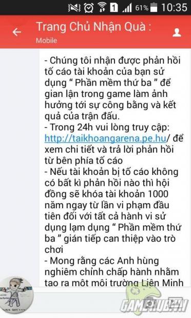 “Ấy vậy mà hôm nay, lúc em chơi với nó, đang chọn tướng thì nick nó bị thoát không rõ tại sao nên bọn em ra solo cho vui. Solo xong, định vào lại rank thì chỉ thấy hiện lên dòng chữ “Lỗi đăng nhập, tài khoản này đã bị cấm chơi mãi mãi.