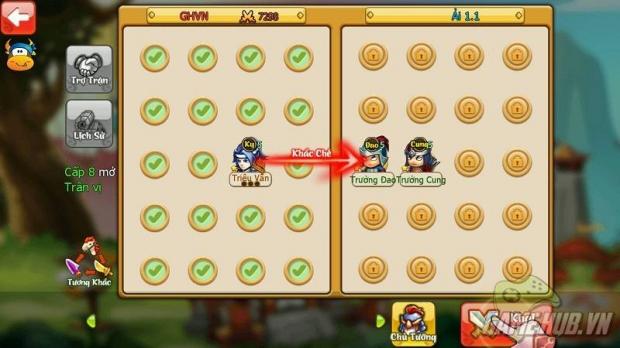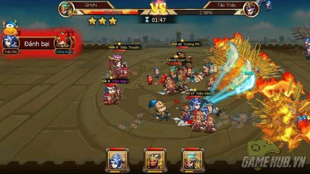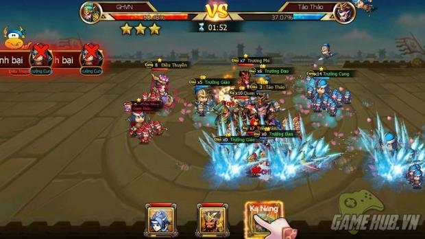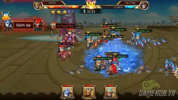 Phong cách chiến đấu của game cũng khá đơn giản, toàn bộ nhân vật sẽ tự động chiến đấu dựa trên vị trí mà người chơi bố trí ban đầu. Khi tướng trong game full nộ, người chơi có thể chủ động cho tướng xả skill. Hệt như trong trailer, khi chiến đấu, các tướng ra skill rất đẹp mắt. Vì mới chơi, nên có vẻ skill tướng của mình chỉ là skill căn bản, nhưng hiệu ứng quả thật rất sinh động.