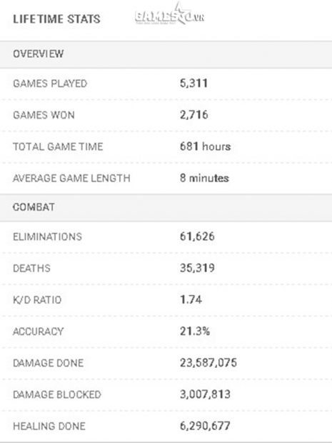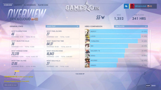 Cụ thể hơn về tài khoản DevjlCloud, game thủ này đã chơi Overwatch được tổng cộng 681 giờ tương đương với 5311 trận đấu. Trong đó, với tỷ lệ thắng là 51,1%, DevjlCloud đã chiến thắng 2,716 trận đấu, đạt được 61,626 mạng bao gồm cả tự hạ gục và hỗ trợ.