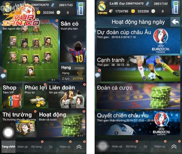 Bên cạnh đó, loạt phụ bản và nhiệm vụ ngày đặc trưng như: Huấn luyện, Thị trường chuyển nhượng, Dự đoán tỷ số, Do thám, Giải đấu Liên minh… chắc chắn sẽ mang đến cho game thủ đội hình bóng đá trong mơ, những thử thách thú vị cùng vô vàn phần thưởng giá trị giúp sức cho hành trình chinh phục môn thể thao vua huyền thoại tại Vua Sân Cỏ.