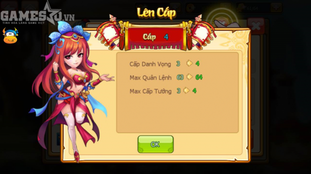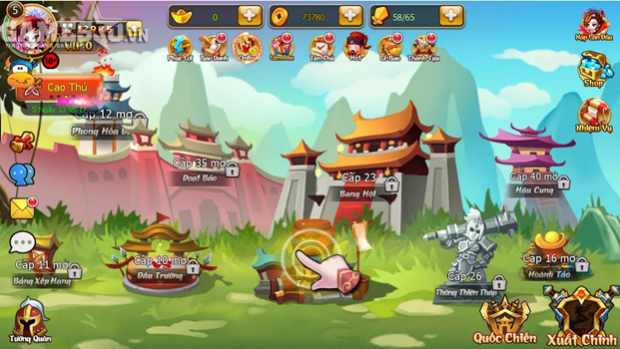Trên giao diện chính có hiển thị các chức năng Quốc Chiến, Thẩm Cung, Đấu Trường, Thông Thiên Các và một số thứ khác. Do level mình còn thấp nên chưa thể vào trải nghiệm những chức năng này, nhưng nhìn chung thì game có vẻ pk ổn, có chức năng Quốc chiến cho phép người chơi pk diện rộng, đặc biệt là chức năng Thẩm Cung có vẻ mới mẻ. Trong quá trình chơi, thỉnh thoảng game lại có một số đoạn truyện ngắn ngắn với những câu nói khá bất hủ của Tào Tháo, mang tinh giải trí khá cao.