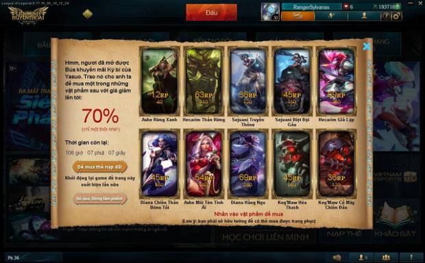 Trong chương trình này, game thủ sẽ có cơ hội mua 1 trong số 10 trang phục do Liên Minh Huyền Thoại đưa ra với mức giảm giá ngẫu nhiên (tối đa lên đến 90%). Các trang phục này đều vô cùng đẹp và có giá khá cao, đặc biệt là dành cho các vị tướng tủ mà game thủ hay sử dụng.