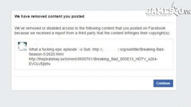Anh này cho biết, dòng Status trên được anh đăng cách đây ít nhất 2 năm rưỡi khi bộ TV series nổi tiếng Breaking Bad ra tập cuối cùng. Ngoài link của 1 website về phim ảnh, còn là link tải về của website chia sẻ torrent nổi tiếng ThePirateBay. Rõ ràng là không có ai dở hơi và rảnh thời gian, đào 2 năm trên tường để đi tìm đúng cái link này và báo cáo với Facebook cả. Đây rõ ràng là một trình tự động do Facebook triển khai từ khá lâu và nó bắt đầu sờ đến những người dùng tại Việt Nam, nơi có tỉ lệ vi phạm và chia sẻ bản quyền rất lớn.