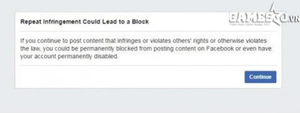 Ngoài ra, Facebook còn nói thêm rằng đây là hành động cảnh cáo và yêu cầu người dùng gỡ bỏ những thứ vi phạm bản quyền từ trước đến nay cũng như không post các nội dung tương tự lên Facebook thêm nữa.