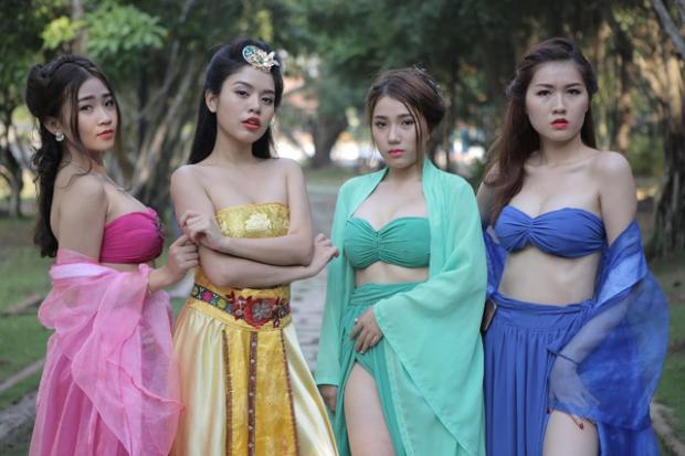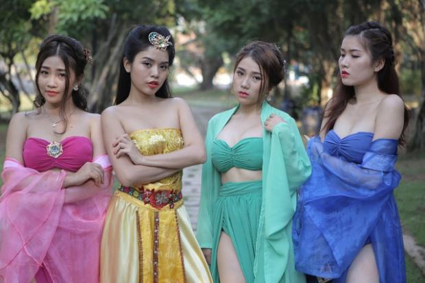 Nhìn hình ảnh hậu trường, nhiều người đồn rằng đây là dàn nhân vật củaThiên Long Bát Bộ, phục trang – tạo hình có nhiều nét tương đồng với chàng trai đào hoa Đoàn Dự. Zoom cận cảnh thì diễn viên đóng vai các mỹ nữ là những gương mặt rất quen thuộc của nhóm hài Ghiền Mỳ Gõ nên lại có lời tiên đoán đây có thể là Hoàn Châu Công Chúa phiên bản mỹ nhân nóng bỏng cũng nên.