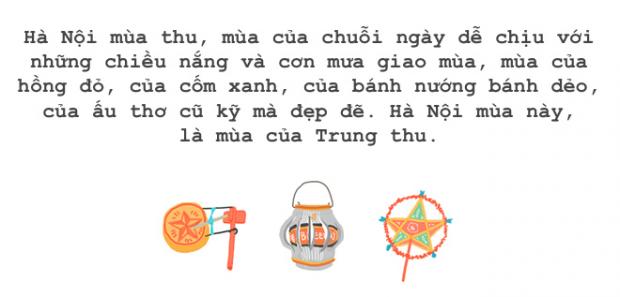 Nhiều người yêu mùa thu chỉ đơn giản là vì thứ tiết trời nhẹ nhàng, vui vẻ ấy thôi. Người lại nhớ đôi ba món quà vặt của mùa thu, nào hồng, nào cốm. Nhưng Hà Nội vào thu, khi mà phố Hàng Mã bắt đầu lập loè màu đỏ đèn lồng, hay những tiếng trống kêu cạch cạch khó chịu bắt đầu nhiều dần, thì cũng là lúc người ta nhìn nhau nói: Lại một mùa Trung thu... Chắc chỉ duy nhất có Tết Trung thu là cái Tết có thể biến đám người lớn trở thành lũ trẻ con, dù chỉ bằng những ký ức của những ngày đã cũ.