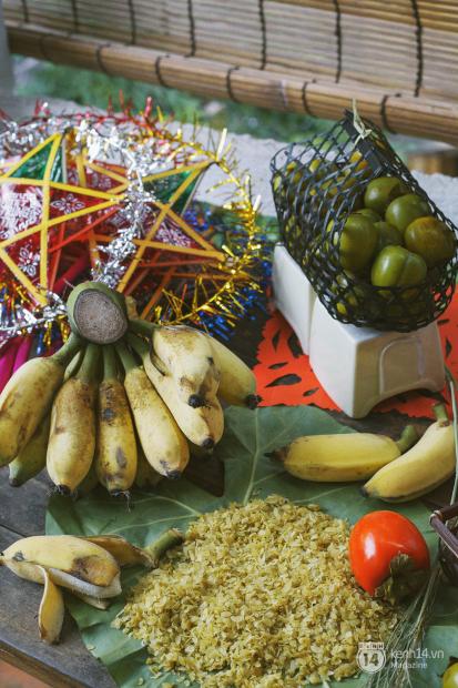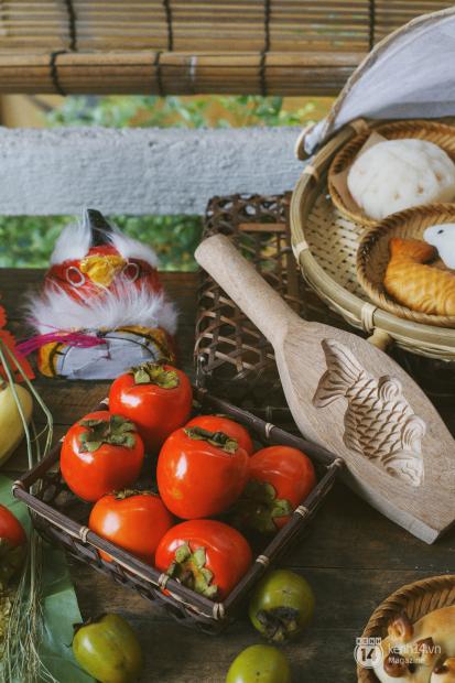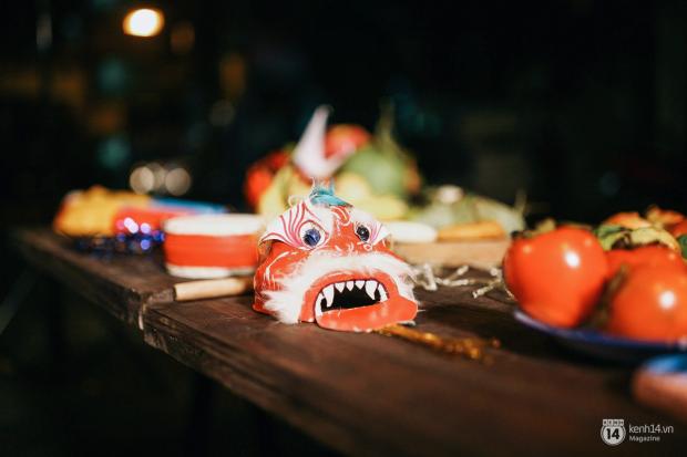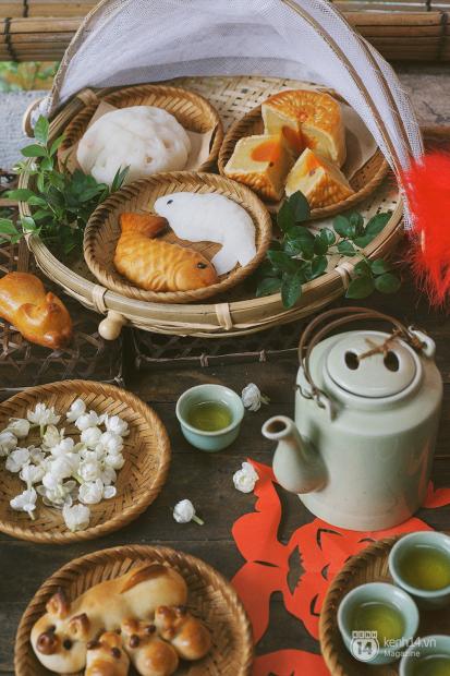Trong khoảnh sân rất nhỏ thôi, bác Tổ trưởng tổ dân phố cùng mọi người kê một cái bàn mica đặt giữa sân, phủ tấm khăn trải bàn màu xanh, ở trên dĩ nhiên là những thức quà mùa Trung thu mà đứa trẻ nào cũng thuộc làu: Một con chó lông xù bằng bưởi, một đĩa hoa quả thật to mà tôi nhớ nhất là có nhiều quả hồng ngâm, chuối, rồi cốm non được bọc kín trong lá sen, rất nhiều kẹo và bánh quy, và dĩ nhiên là bánh nướng, bánh dẻo, rồi thì vài ba con lợn bánh nướng béo núc đặt trong giỏ đỏ - vàng.