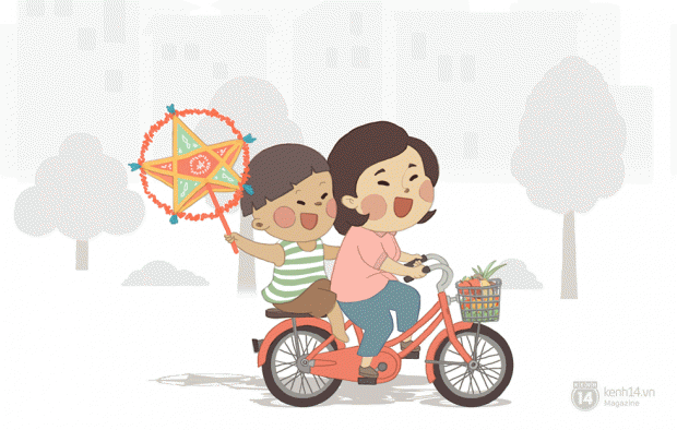 Có một năm, trong xóm không tổ chức phá cỗ, nhưng mẹ đưa tôi và hai đứa nữa trong xóm đi một vòng quanh phố để rước đèn. Thật ra rước đèn là một hoạt động rất… nhanh chán với một đứa trẻ con, chỉ đơn giản là cầm chiếc đèn lồng và đi quanh phố thôi mà. Nghĩ lại cũng thấy lạ, sao hồi đấy lại thích thế? Đèn lồng của tôi làm theo hình một nhân vật hoạt hình mà tôi không nhớ nổi tên nữa, làm bằng giấy xếp màu hồng, rất xinh. Chúng tôi cứ thế chậm rãi đi trên con đường lấp loáng ánh bạc của trăng, vừa đi vừa nói chuyện, trong xào xạc lá cây đu đưa giữa cái tiết trời êm dịu, mát mẻ của một đêm mùa thu. Bây giờ, khi viết những dòng này vào một đêm tháng 9 giao mùa, tôi vẫn nhớ như in hình ảnh chiếc đèn lồng toả ra thứ ánh sáng vàng dễ chịu thế nào, và những câu chuyện luyên thuyên của mẹ, của tôi và hai đứa nhóc kia vui ra sao.