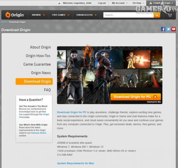 Bước 3: Cài đặt Origin và đăng nhập bằng tài khoản cá nhân vừa đăng ký ít phút trước. Đến bước này, việc cài đặt và đăng nhập khá giống với Steam.