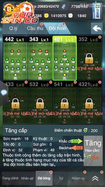 Bên cạnh đó, hệ thống phụ bản nhiệm vụ ngày vô cùng phong phú của Vua Sân Cỏ như: Huấn luyện, Do thám, Liên minh – Liên đoàn, Dự đoán tỷ số, Thị trường chuyển nhượng… chắc chắn sẽ mang cả thế giới bóng đá siêu chất lên chính màn hình điện thoại cùa bạn!