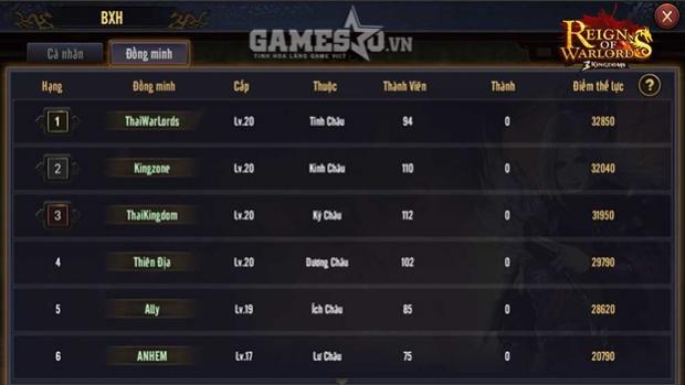 Tại máy chủ đầu tiên của Reign of Warlords, ba Đồng Minh ThaiWarLords, Kingzone và ThaiKingdom (đều được tạo dựng bởi game thủ Thái Lan) đang chia nhau nắm giữ ba vị trí cao nhất trên bảng xếp hạng. Nhìn toàn cảnh, trong số các bang hội top đầu, “đội bạn” cũng sở hữu số lượng vượt trội so với game thủ Việt. Thậm chí, ngay cả những Đồng Minh được thành lập với tinh thần “đa quốc tịch”, game thủ từ nước bạn cũng thể hiện bản lĩnh khá ấn tượng, nắm giữ nhiều vị trí chủ chốt và có sự tương tác thường xuyên, năng động với những đồng minh khác.