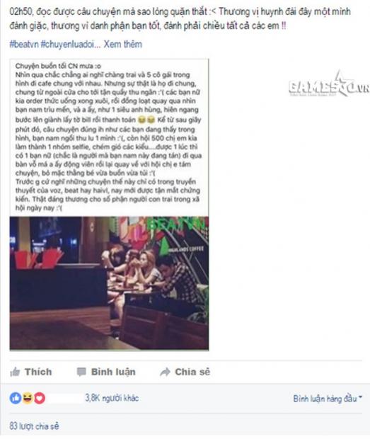 Trong bức ảnh đang được chia sẻ rầm rộ, chàng trai và 5 cô gái đi café với nhau nhưng cảnh tượng diễn ra lại vô cùng 'thương tâm'.