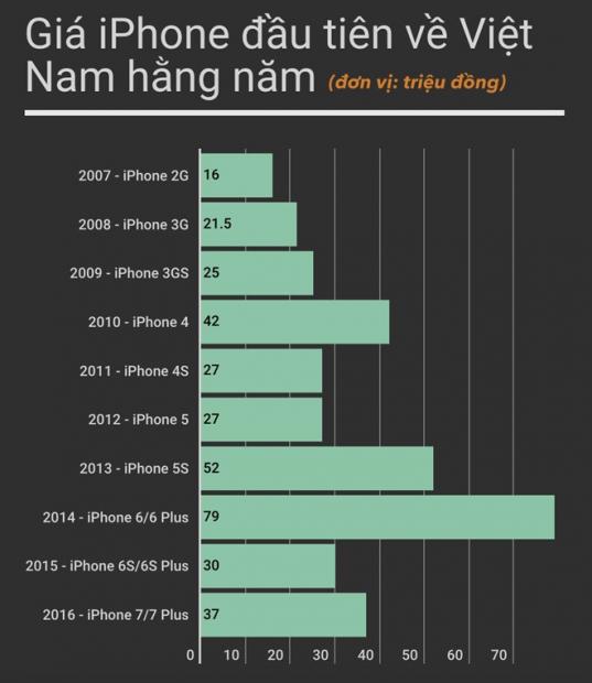 Giá iPhone lần đầu về Việt Nam qua các năm.