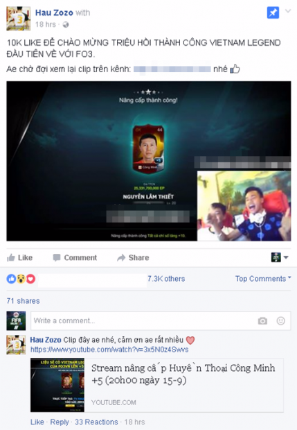 Chỉ có 4 cầu thủ Việt Nam trong FIFA Online 3. 3 huyền thoại Công Minh, Hồng Sơn, Huỳnh Đức là mục tiêu, khát khao của rất nhiều người chơi. Việc sở hữu một thẻ huyền thoại nước nhà in-game lên đến hàng tỉ EP là niềm tự hào không thể che giấu với bất kì ai.