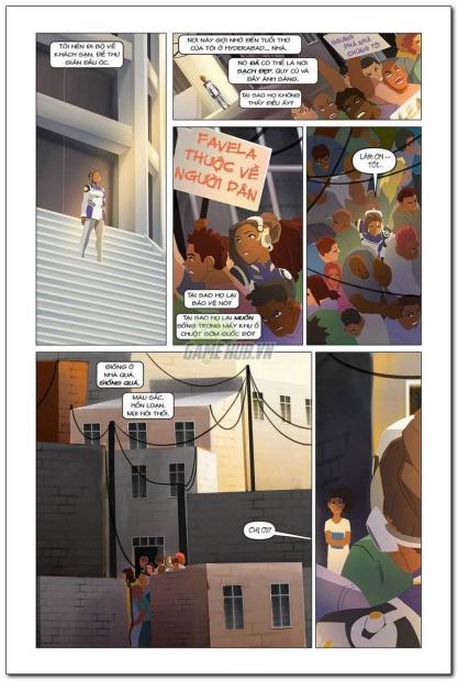 Symmetra: A Better World (Symmetra: Một thế giới tốt đẹp hơn)Dịch giả: Fang. (bạn đọc có thể click trực tiếp vào ảnh để xem rõ hơn) Trong tập sau của series truyện tranh Overwatch chúng ta sẽ đến với Pharah, một trong những nữ Hero tấn công đáng gờm nhất trong game.