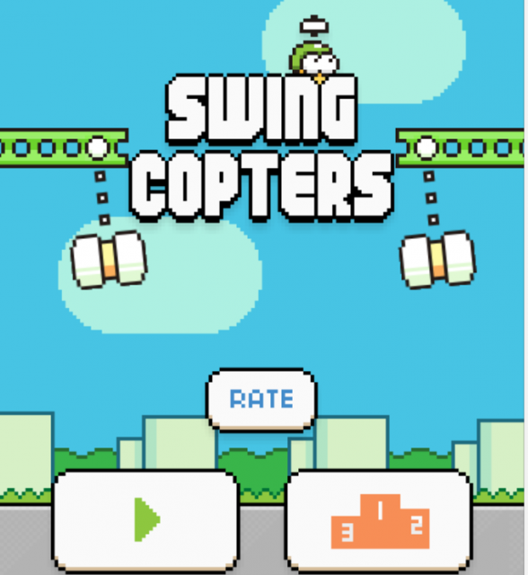 Vừa ra mắt được 1 ngày nhưng Swing Copters đã nhanh chóng thu hút được sự chú ý, thậm chí game nhái ăn theo Swing Copters cũng đã ra mắt.Do đó, người sử dụng cần tìm đúng game với tên tác giả là Dong Nguyen hoặc .Gears trên 2 kho ứng dụng.
