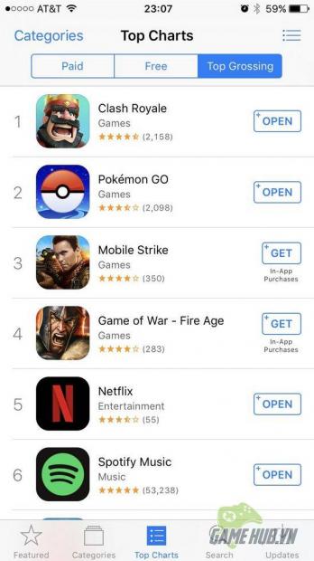 Chưa rõ với việc ra mắt Pokemon GO Plus và nhiều thay đổi mới có giúp Pokemon GO trở về với phong độ trước đây hay không, nhưng rõ ràng ngay vào thời điểm hiện tại tựa game đã bị lép vế về nhiều mặt. Bằng chứng điển hình cho điều đó chính thứ hạng trên Top doanh thu của App Store Mỹ đã không còn có sự góp mặt của Pokemon GO. Thay vào đó là một tựa game hết sức quen thuộc.. Clash Royale.