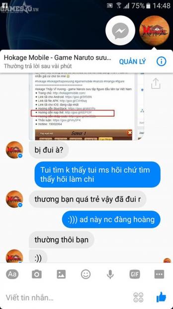 Đoạn hội thoại trên chỉ là sự hiểu lầm đáng tiếcĐược biết người admin trả lời đoạn hội thoại trên là admin Sói Bạc, một thành viên Ban Quản Trị fanpage Hokage Mobile – Game sưu tập figure đầu tiên. Tuy nhiệt tình với người chơi, tận tâm với sản phẩm nhưng tính tình vốn thẳng thắn, thích đùa lại vô tư nên trong nhiều đoạn hội thoại, tư vấn cho game thủ, admin này luôn đặt vị trí là một game thủ để giao lưu, hướng dẫn người chơi nên đã vô tình có kiểu trò chuyện nửa đùa, nửa thực gây hiểu lầm như trên.