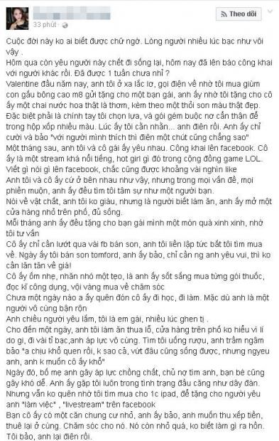 Bạn đọc có thể thấy rằng, qua lời trần tình của Linh Ngọc Đàm thì câu chuyện có vẻ khá trái ngược so với chia sẻ của cô gái kia. Không phủ nhận những món quà mà người yêu cũ tặng, tuy nhiên Linh cũng lên tiếng rằng người yêu cũ mình là người không có chí hướng, cũng chẳng phải 'soái ca' gì khi ngồi 12 tiếng/ngày ngoài quán net, không lo làm ăn.