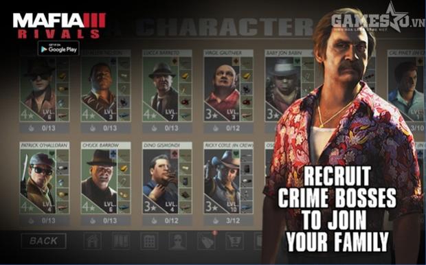 Những băng nhóm hay gia đình mafia mà người chơi sẽ đụng độ trong Mafia 3: Rivals có thể đến từ máy hoặc những người chơi ngoài đời thực. Chính vì thế mà phiên bản di động cũng trau truốt khá kỹ lưỡng chế độ PvP để nhằm mang lại những trận đấu thời gian thực cạnh tranh và khốc liệt nhất cho gamer. Khi hoàn thành nhiều màn chơi hơn, game thủ sẽ có thể mở khóa và sử dụng nhiều nâng cấp hữu ích cho băng nhóm của mình.
