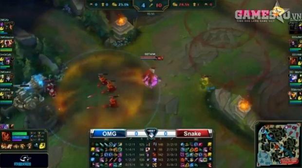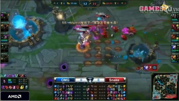 Ngày hôm nay, giải đấu tiếp tục với trận chung kết bảng D giữa Snake eSports và OMG. Đây chắc chắn là đối thủ khó chơi hơn rất nhiều 2144D, bởi lẽ OMG là một đội tuyển hàng thật giá thật tại LPL. Điều này đã được minh chứng rõ ràng ngay trong ván đầu tiên.
