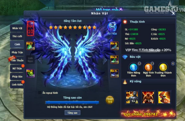Dành cho những ai đang cần chăm chút cho bộ hay hay thú cưỡi của mình, phiên bản Phi Thăng Tiên Giới mở rộng tiến cấp 10, mang đến diện mạo đỉnh hơn cho trang bị cánh và thú cưỡi. Sau khi tiến cấp, các chỉ số thuộc tính đều tăng cao ngất ngưởng như Sinh Lực, Thủ, Né, Sức bền, Bạo kích, v…v