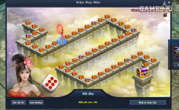 Đúng như tên gọi, đây sẽ là hoạt động ưa thích của những người muốn thử vận may. Người chơi sẽ đổ xí ngầu để nhân vật đi qua các ô của Đại Điện. Số điểm trên mặt xí ngầu sẽ dẫn dắt người chơi đến những ô cửa khác nhau, ẩn chứa nhiều phần quà ngẫu nhiên có giá trị.