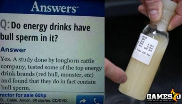 Trong thời gian gần đây tại một số cộng đồng game thủ lớn tại Việt Nam có chia sẻ thông tin về việc trong loại nước tăng lực được rất nhiều game thủ Việt Nam yêu thích là Red Bull có … nước tiểu và tinh trùng bò. Kèm theo đó là một bức ảnh chụp thành phần in trên vỏ chai Red Bull vềchất Taurine cùng câu trả lời về nguồn gốc của Taurine trên Wikianswers khiến rất nhiều game thủ hoang mang bởi nó nói rằng Taurine được tìm thấy phần lớn ở trong tinh dịch bò. Thậm chí còn cả hẳn cả một video chia sẻ về việc chất Taurine này được chiết xuất như thế nào khiến rất nhiều người coi Redbull hay các đồ uống tăng lực khác là thức uống thường xuyên không khỏi bị sốc