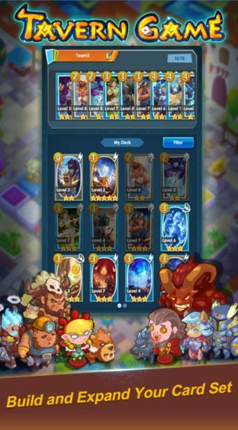 Các thẻ bài cũng sẽ có điểm kinh nghiệm đẻ gia tăng cấp độ điều này khá giống với Clash Royale. Mỗi trận đấu trong Tavern Game kéo dài tối đa là 10 phút. Số lượng thẻ bài cũng gồm hơn 70 thẻ chia thành 3 lớp nhân vật. Kết thúc mỗi trận đấu thì người chơi đều sẽ nhận được phần thưởng là những thẻ bài. Các thẻ bài đều có các đặc tính như tấn công, phép thuật bổ trợ khác nhau và mỗi loại quân tương ứng với thẻ bài đểu ít nhiều có liên quan trực tiếp tới cốt truyện trong thể giới cổ tích nhiều màu sắc của Tavern Game. Tựa game turn-based kết hợp thẻ bài tung xí ngầu cực thú vị này ngoài chế độ chơi 1vs1 thì còn 2vs2 và một số chế độ chơi khác dự kiến sẽ ra mắt trong thời gian tới.