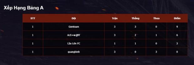 Ngày thi đấu đầu tiên (26/8) diễn ra tại bảng A đã chứng kiến một bất ngờ khi Gemteam xuất sắc dành chiến thắng ở cả 3 trận đấu cùng với tỉ số 2-0, qua đó đứng đầu bảng. Trong khi đó, ứng cử viên vô địch AcE☞♣๖ۣۜMT dù sảy chân trước Gemteam nhưng vẫn dễ dàng vượt qua 2 đối thủ còn lại để dành vị trí thứ hai và có suất trong vòng bán kết.