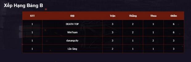 Trong khi đó bảng B (27/8) diễn ra có phần căng thẳng hơn khi chất lượng các đội khá đồng đều. DEATH TOP với hai trận thắng dễ dàng trước các đối thủ danangcity và Lão làng gần như đặt một chân vào bán kết. Nhưng chúng ta cần phải nhắc đến WinTeam, mặc dù để thua danangcity trong trận đấu đầu tiên với tỉ số 1-2 nhưng với sự nỗ lực họ đã vượt qua DEATH TOP và Lão Làng cùng với tỉ số 2-1. Qua đó, đứng thứ hai bảng B (cùng điểm với DEATH TOP nhưng thua hiệu số đối đầu).