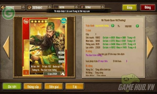 Nhưng nếu như việc sở hữu những Gia Cát Lượng, Tư Mã Ý, Tôn Quyền, Tôn Sách đã khó rồi thì việc Tiến Giai những tướng này còn gian nan lên gấp bội. Đa phần ngươi chơi chỉ dừng bước ở mức Chân 2 bởi vì để lên Quỷ 1 đòi hỏi bắt buộc phải có một tướng Cam (Vàng) nữa. Ví dụ để Tiến Giai Quan Vũ từ Chân 2 lên Quỷ 1 thì người chơi phải “thí” một Quan Vũ nữa. Đó là thử thách không hề dễ dàng và nếu làm được thì sẽ là niềm vui cực kỳ lớn đối với bất kỳ game thủ nào.