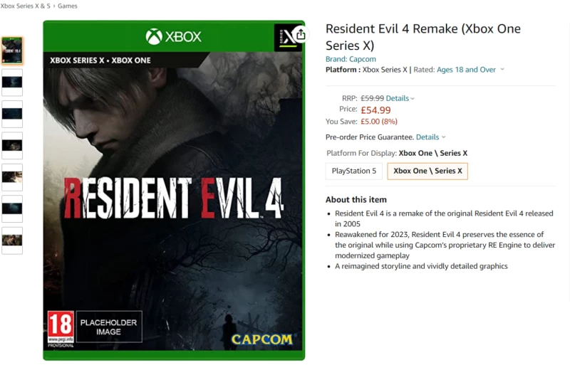 Nhưng theo thông tin được đưa ra bởi Amazon UK thì không phải như vậy, bởi họ đã công bố thông tin Resident Evil 4: Remastered phiên bản Xbox One.