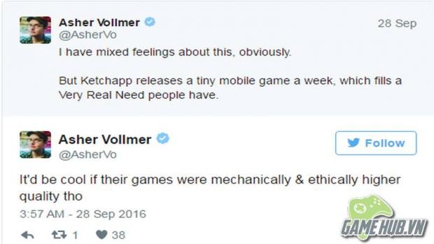 Tuy nhiên phản ứng trước sự việc, ông Asher Vollmer, cha đẻ của game Threes, có nhận định như sau: