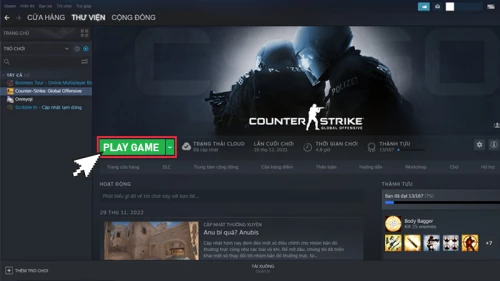 Bước 3: Chọn game CS:GO, bấm vào ô 'Play game' màu xanh lá