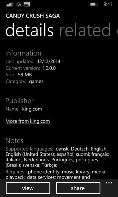 Phiên bản Candy Crush Saga cho Windows Phone có hàng trăm màn chơi khác nhau và mỗi tuần sẽ được bổ sung thêm hai màn chơi. Bạn cũng có thể đồng bộ trò chơi này giữa các thiết bị và mở khóa 'tính năng game đầy đủ' khi kết nối trực tuyến. Đúng vậy, đây là trò chơi được cả nam giới và phụ nữ ưa chuộng.