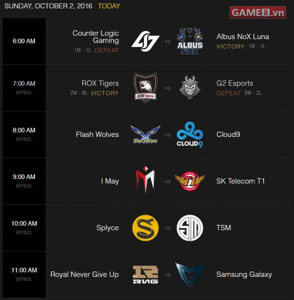 GameSao sẽ liên tục thông tin tới độc giả diễn biến chính và kết quả của sáu cặp đấu của Ngày 3 - CKTG 2016.