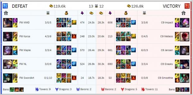 Đây đã là trận thua thứ hai liên tiếp của FW. Còn về phía C9, họ đã phần nào đáp ứng được sự ủng hộ không biết mệt mỏi của đông đảo CĐV nhà ở phía dưới sân khấu.