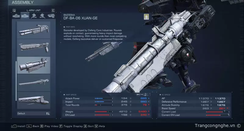 Kết hợp ACS với hệ thống vũ khí, mục tiêu của anh em là duy trì hỏa lực càng đều càng tốt. Ban đầu, hệ thống đại bác và tên lửa có vẻ hấp dẫn, giúp tiêu diệt đối thủ nhanh chóng. Tuy nhiên, đó chỉ là những xe tăng hoặc mech tự hành chậm chạp thông thường. Khi gặp những Armored Core thực sự đáng gờm, anh em sẽ phải cân nhắc mọi khía cạnh khác, không chỉ chọn vũ khí có số liệu lớn nhất.